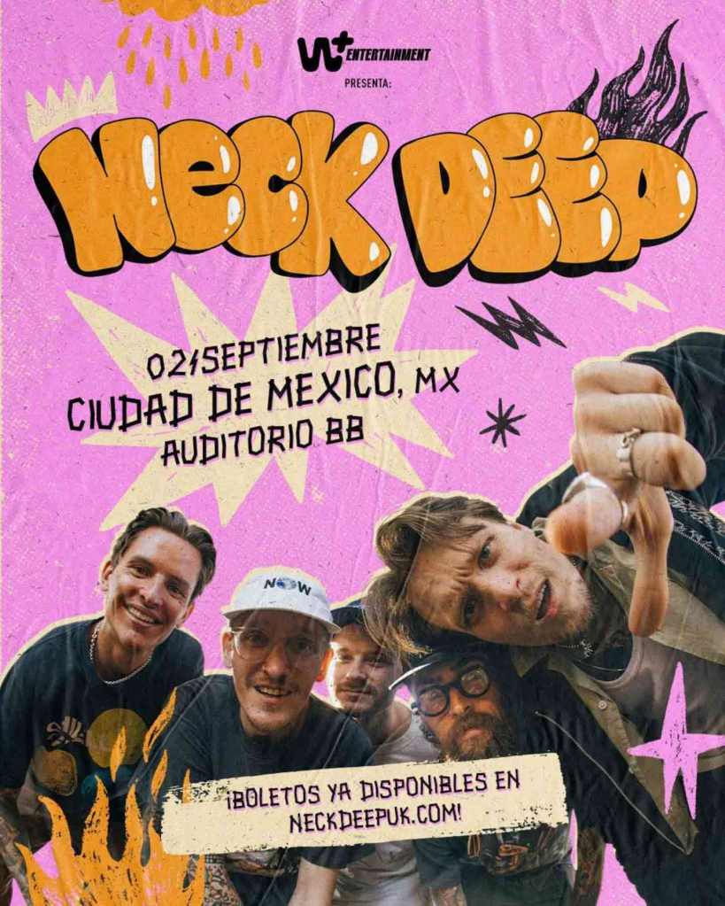 Boletos disponibles ahora a través de neckdeep.com y Passline. No pierdas la oportunidad de ser parte de esta noche inolvidable, presentado por W+Entertainment