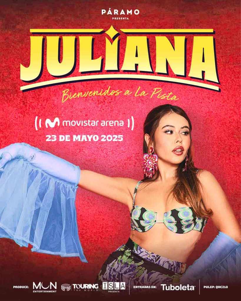Juliana celebrará este gran momento con un concierto en el Movistar Arena de Bogotá el 23 de mayo, donde presentará La Pista en vivo, junto con los temas que la han convertido en una de las artistas colombianas más destacadas del momento.